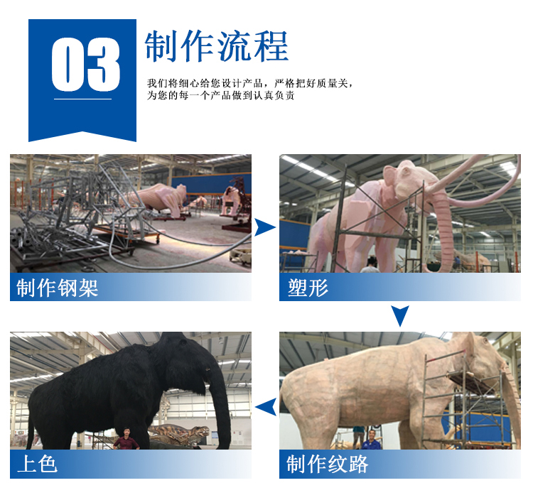 备注: 我们所制作的仿真动物展品和被生物专家所鉴定为“优秀科研作品”被誉为”侏罗纪“的在现者。我们将秉承客户至上的理念,为客户设计和制造仿真展品,并根据客户的要求提供3年以上质量保证,并长期为客户提供培训安装维修人员和配件等售后服务,为顾客解除了展品长期使用展览的后顾之忧。