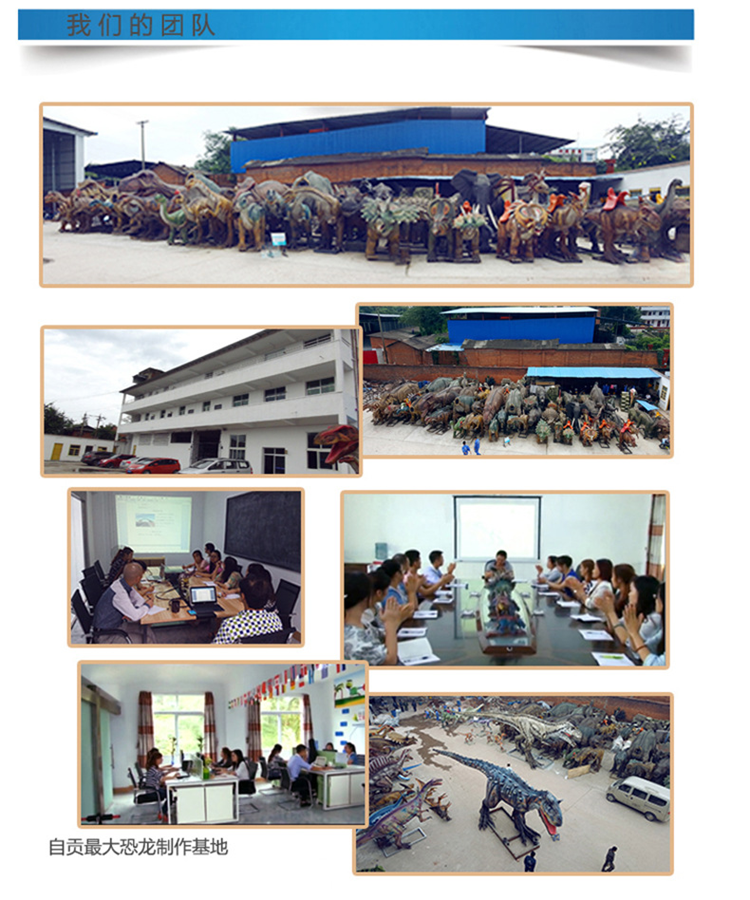 备注: 我们所制作的仿真恐龙展品和骨架模型展品被专家鉴定为“优秀科研作品”被誉为”侏罗纪“的在现者。我们将秉承客户至上的理念,为客户设计和制造恐龙展品,并根据客户的要求提供3年以上质量保证,并长期为客户提供培训安装维修人员和配件等售后服务,为顾客解除了恐龙展品长期使用展览的后顾之忧。